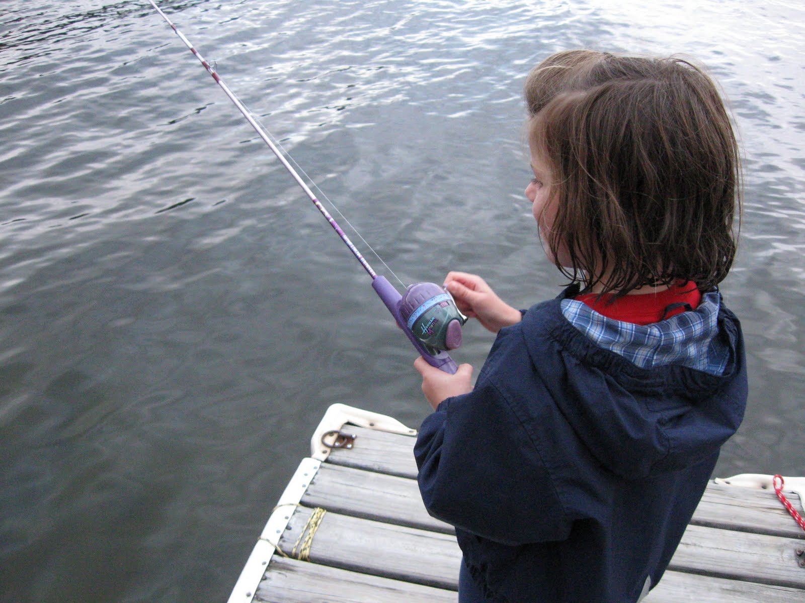 At the lake house we rented for a family vacation, there was a fishing pole. Here is my niece trying to catch a fish in the lake. The purple fishing pole reel has a Hannah Montana logo on it. I was amazed. Branded play is everywhere.