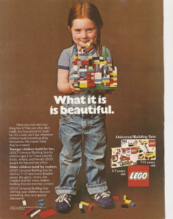 I had not seen the new Legos until I read this . . . what a disappointment. I had naively hoped that Lego would come up with something cool and creative for my daughter. Luckily, she won't be interested in this new product. The last thing the world needs is more girl figures with handbags and lipstick …. My daughter will continue playing with her Playmobile Knights. She thinks since some of the knights have long hair that they are women. I hope she won't be crushed when she realizes they are all men.I love the picture from the 80s — that is what Lego should be about!